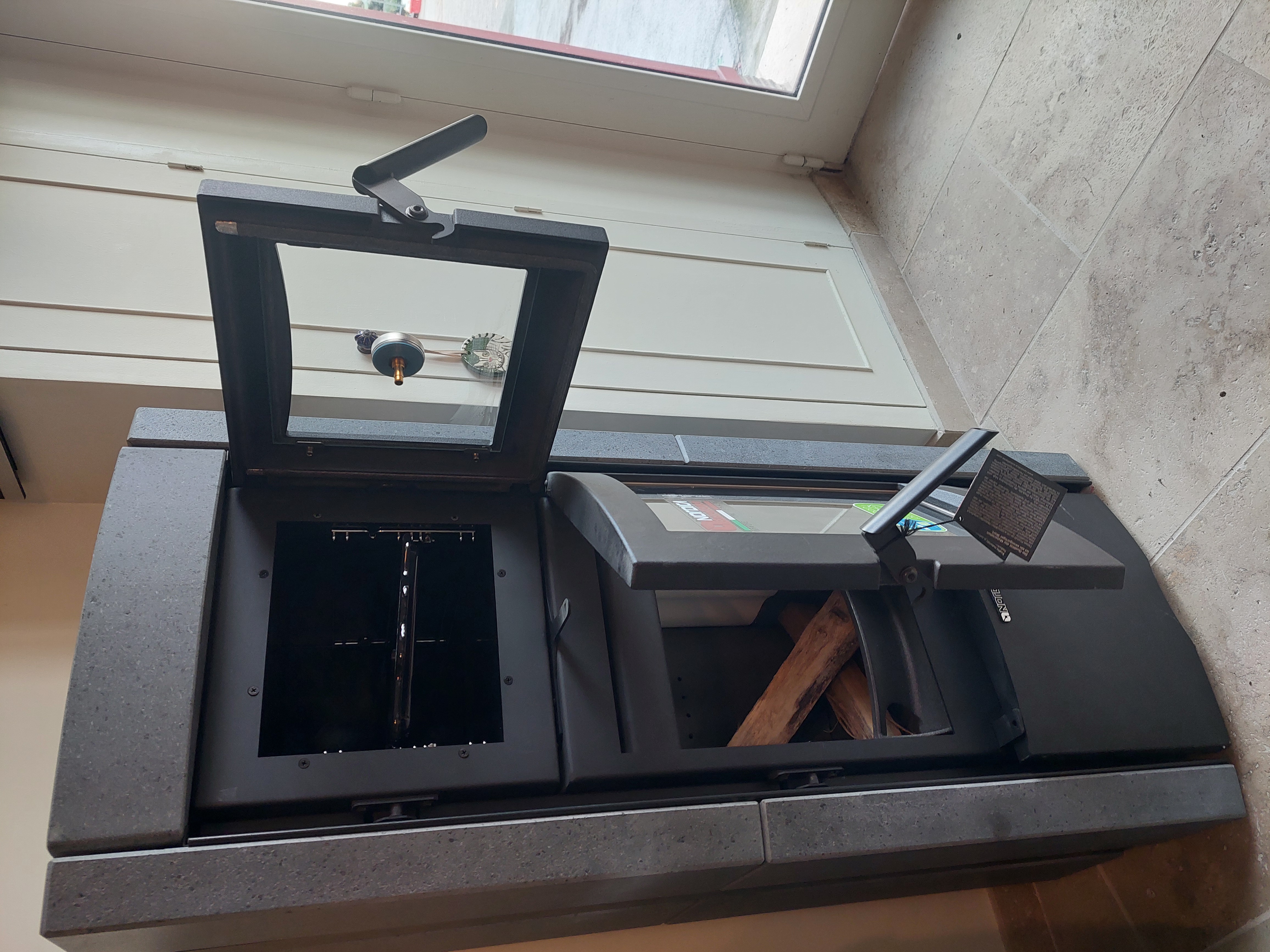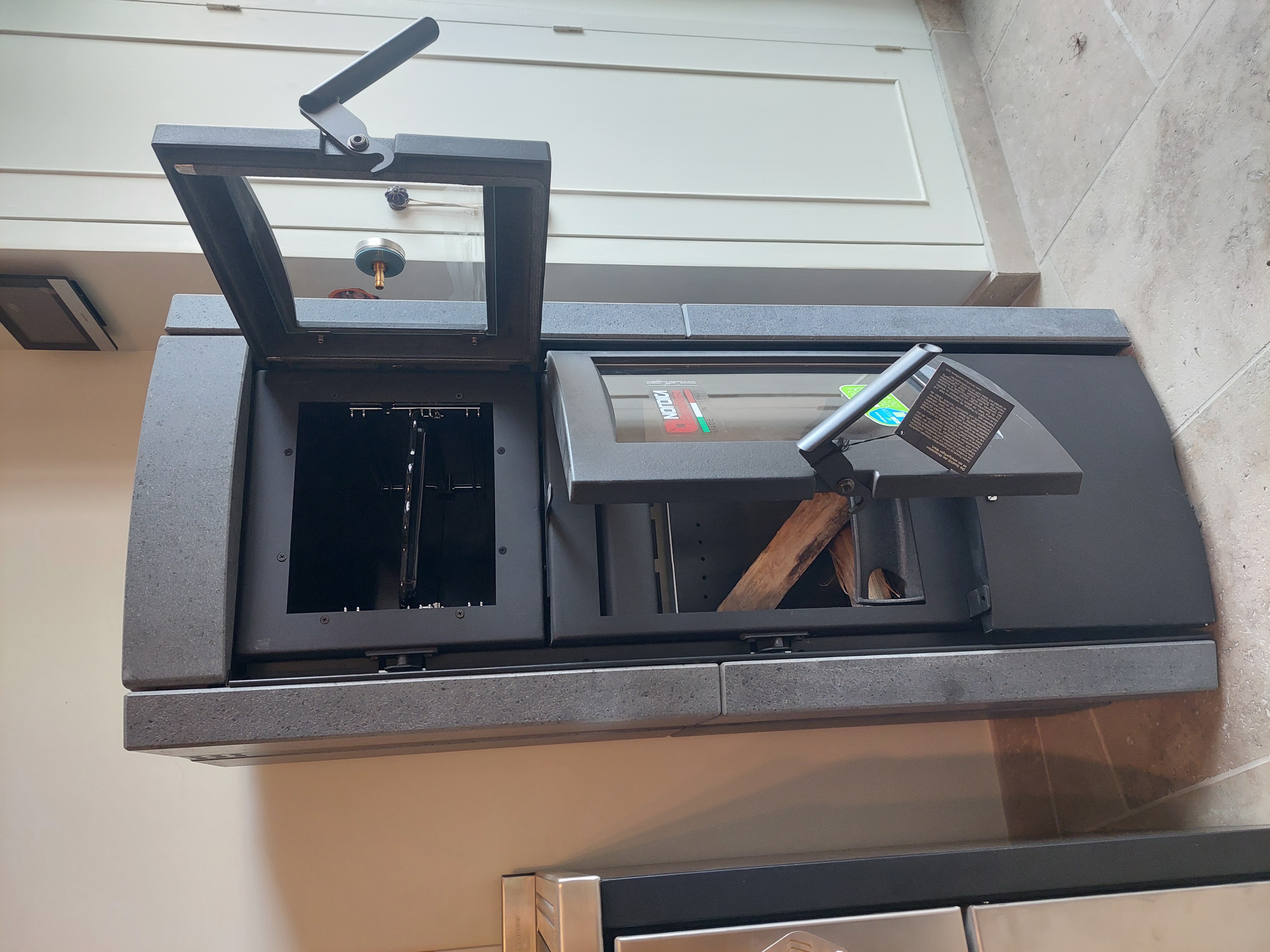 Pôele à bûches, avec un four.
