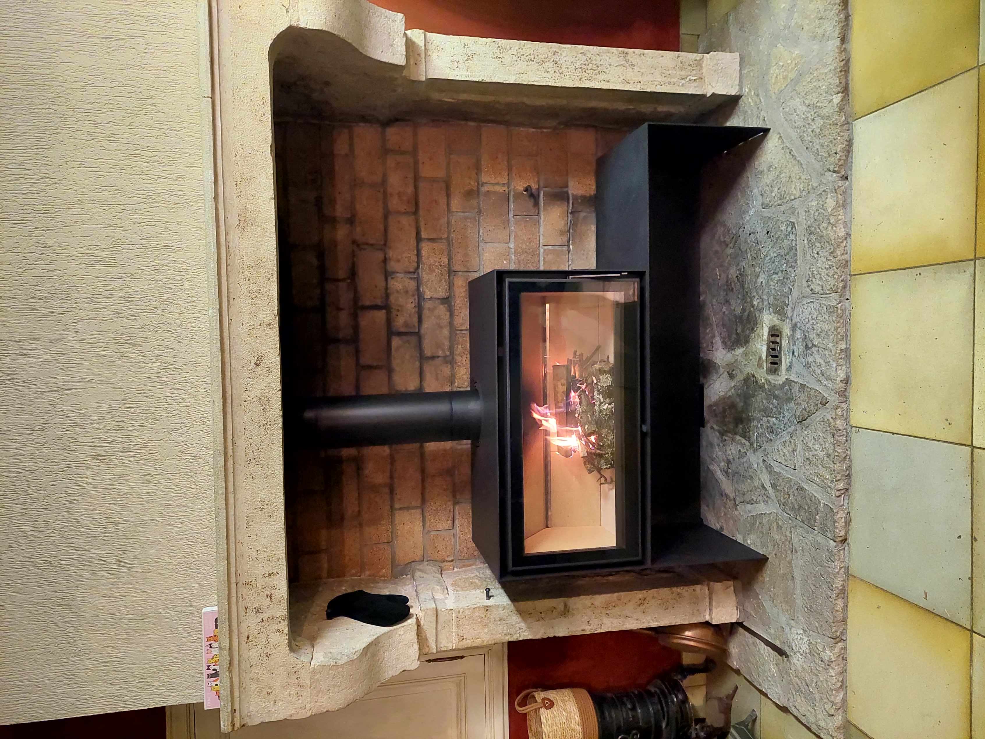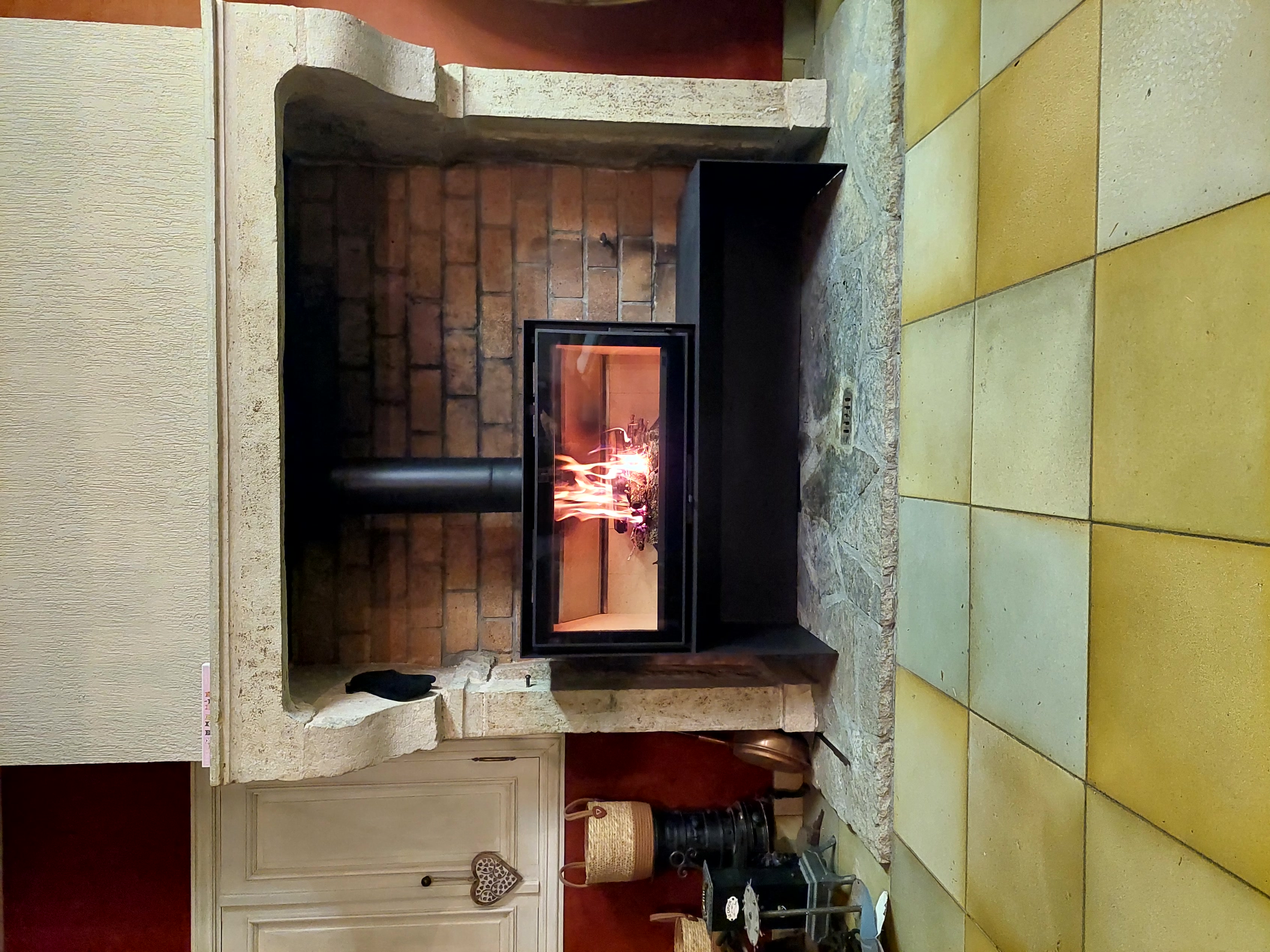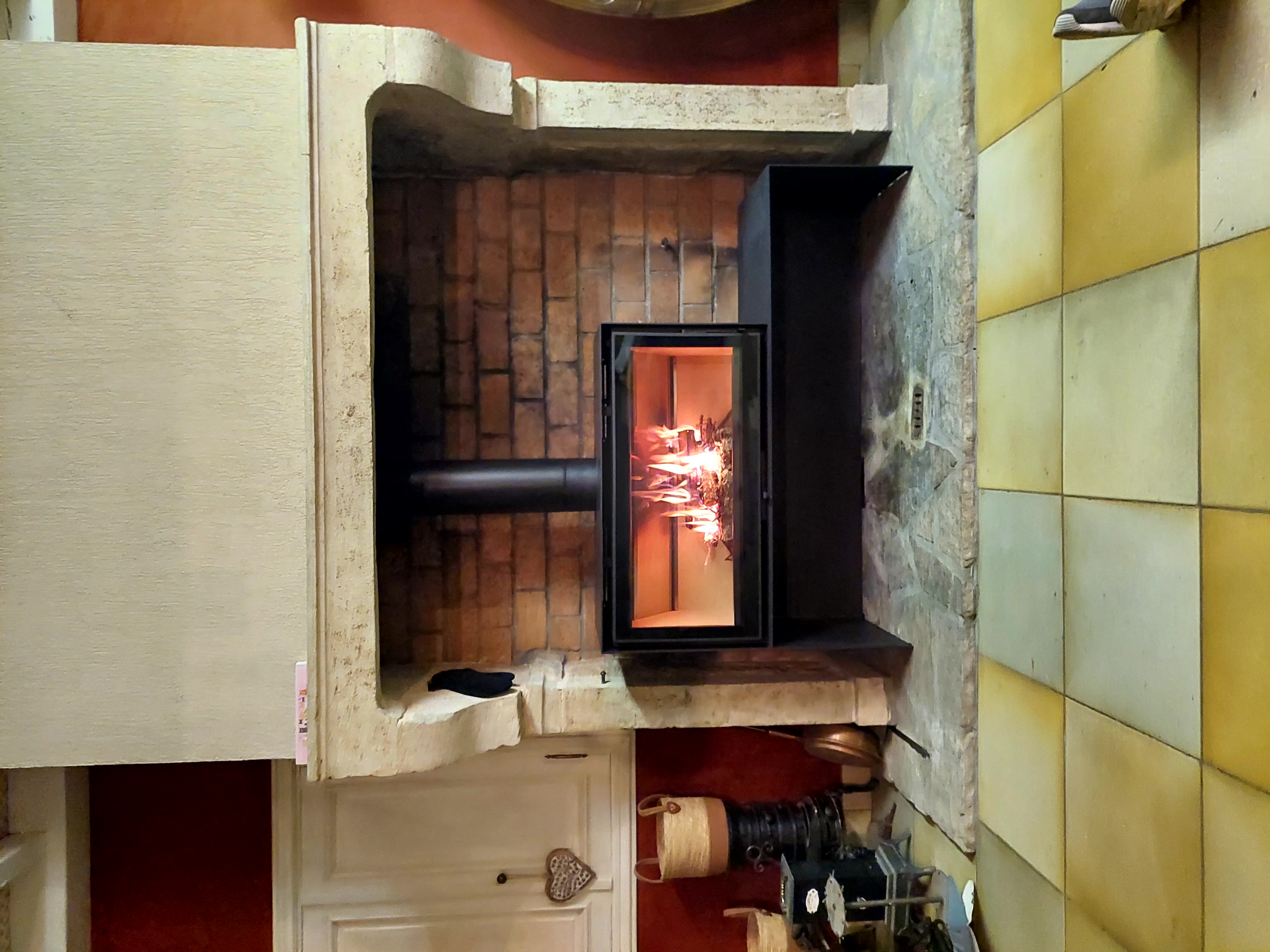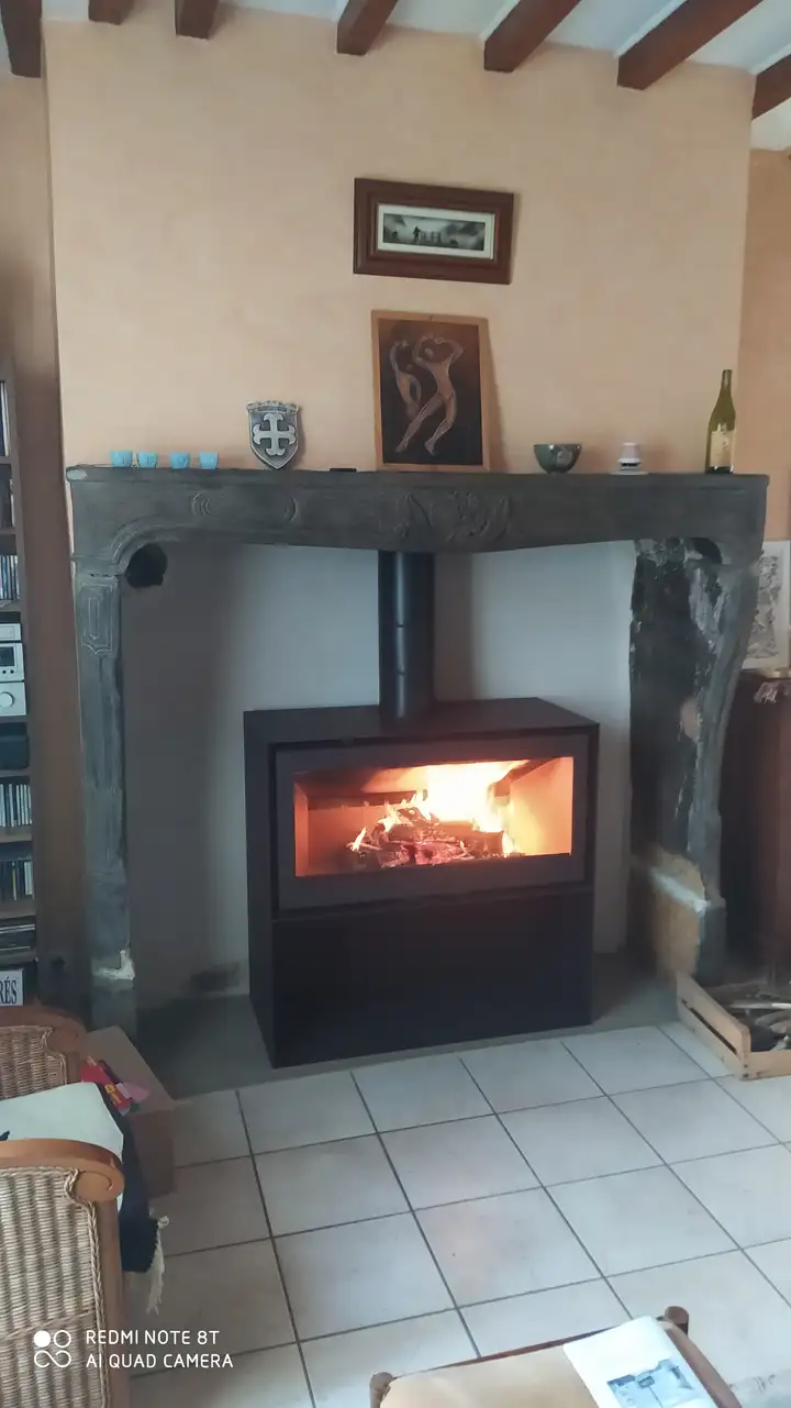 Cet insert est intégré dans une cheminée.
