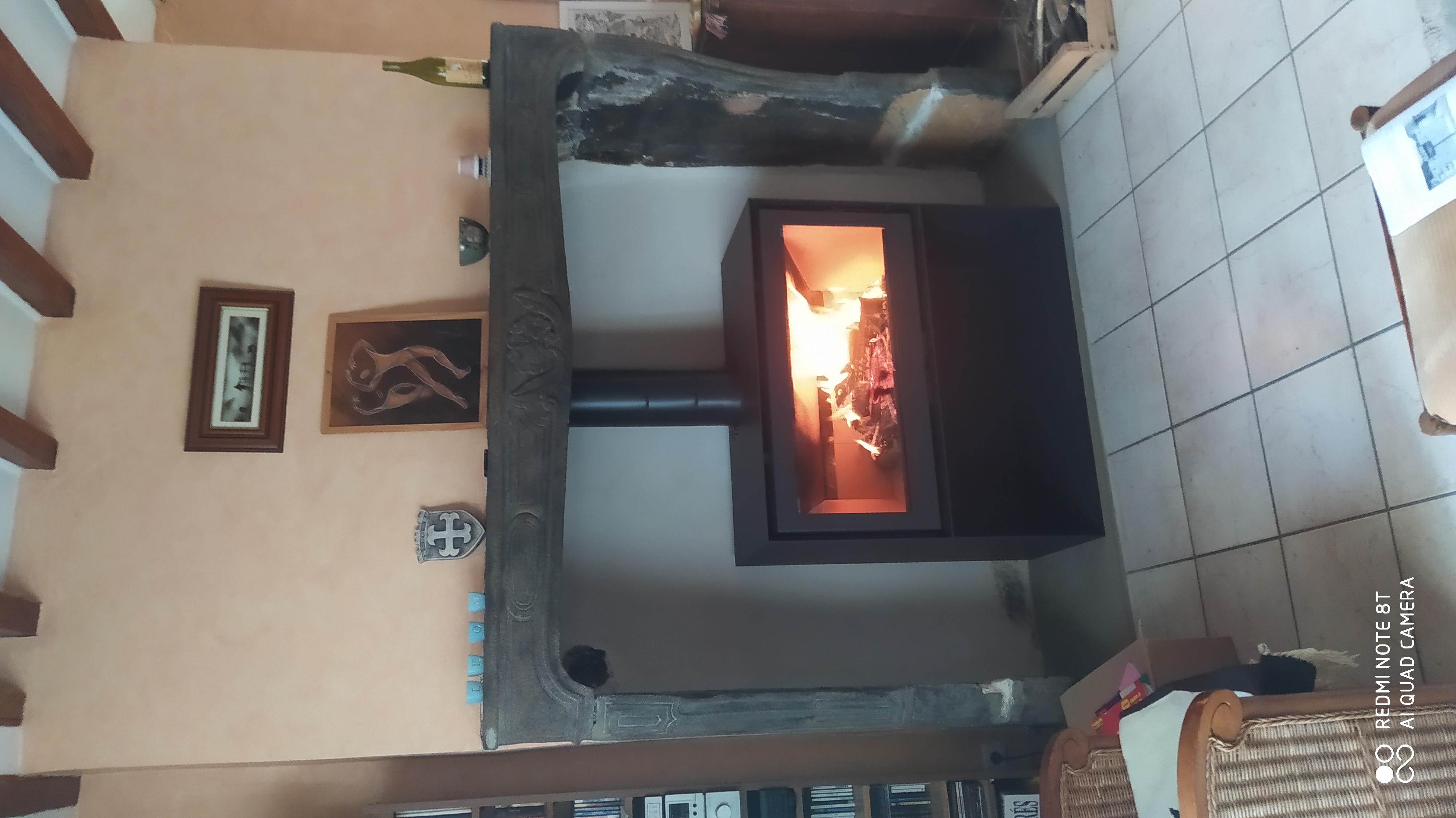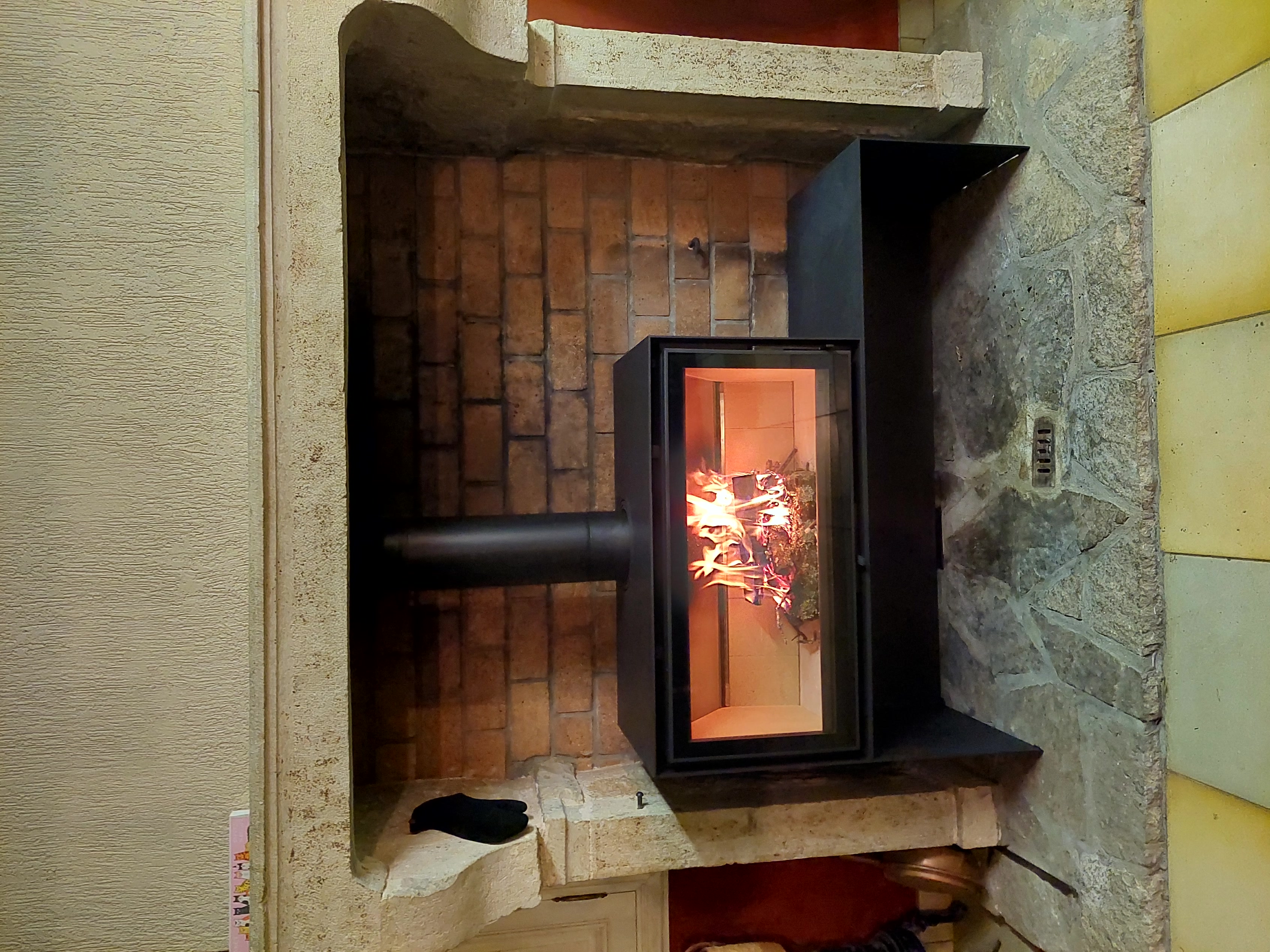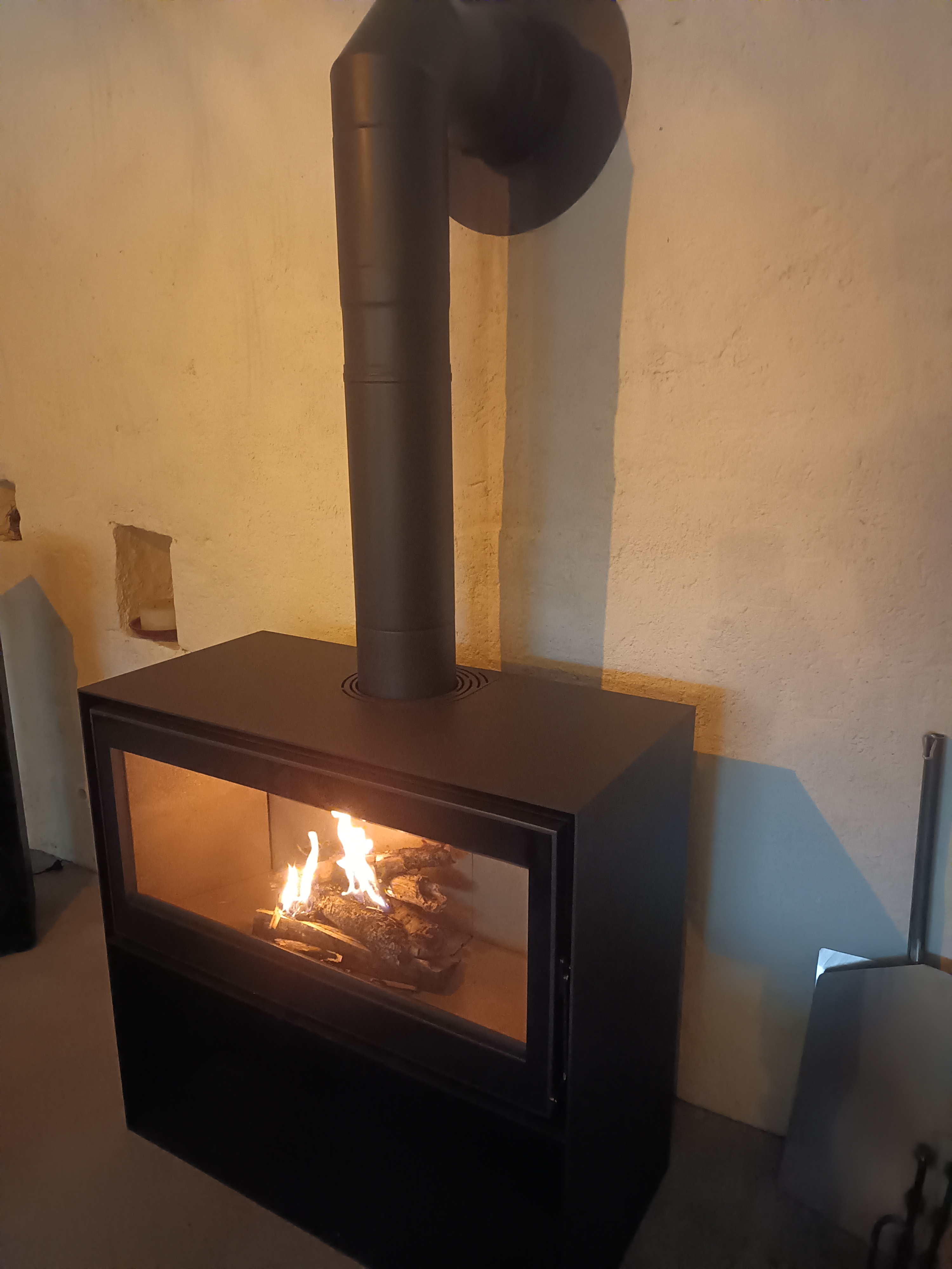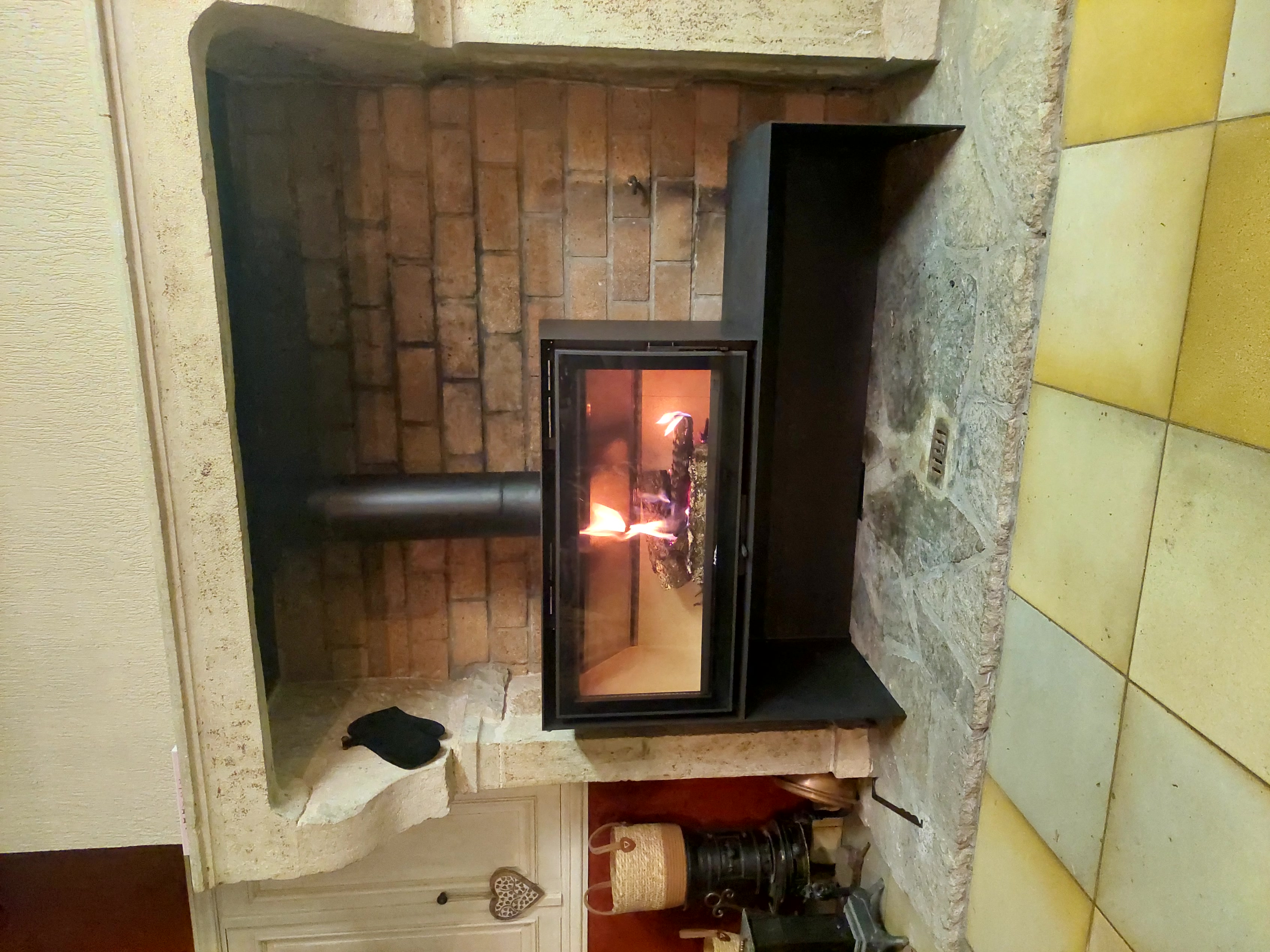 Cet insert est intégré dans une cheminée.