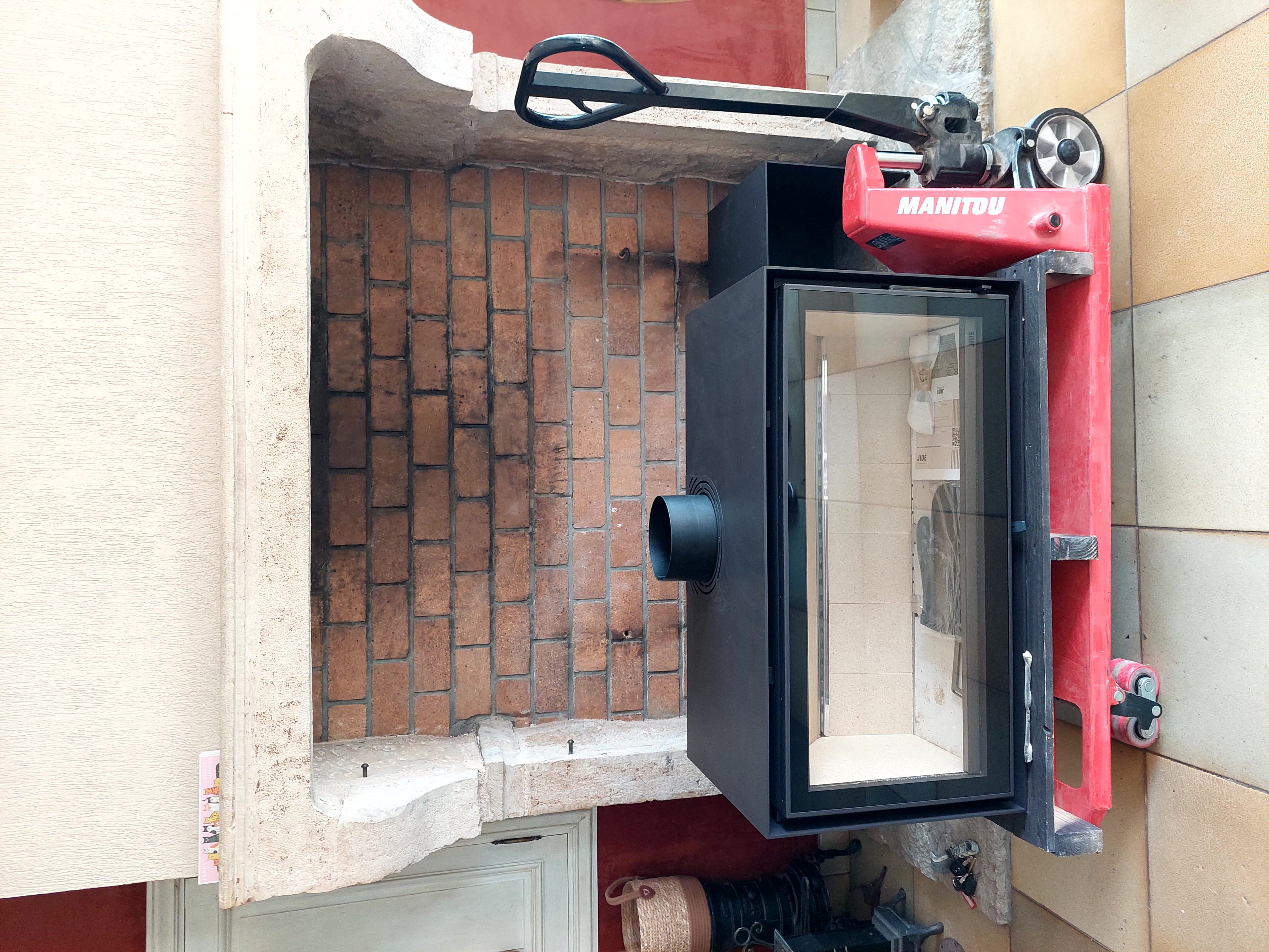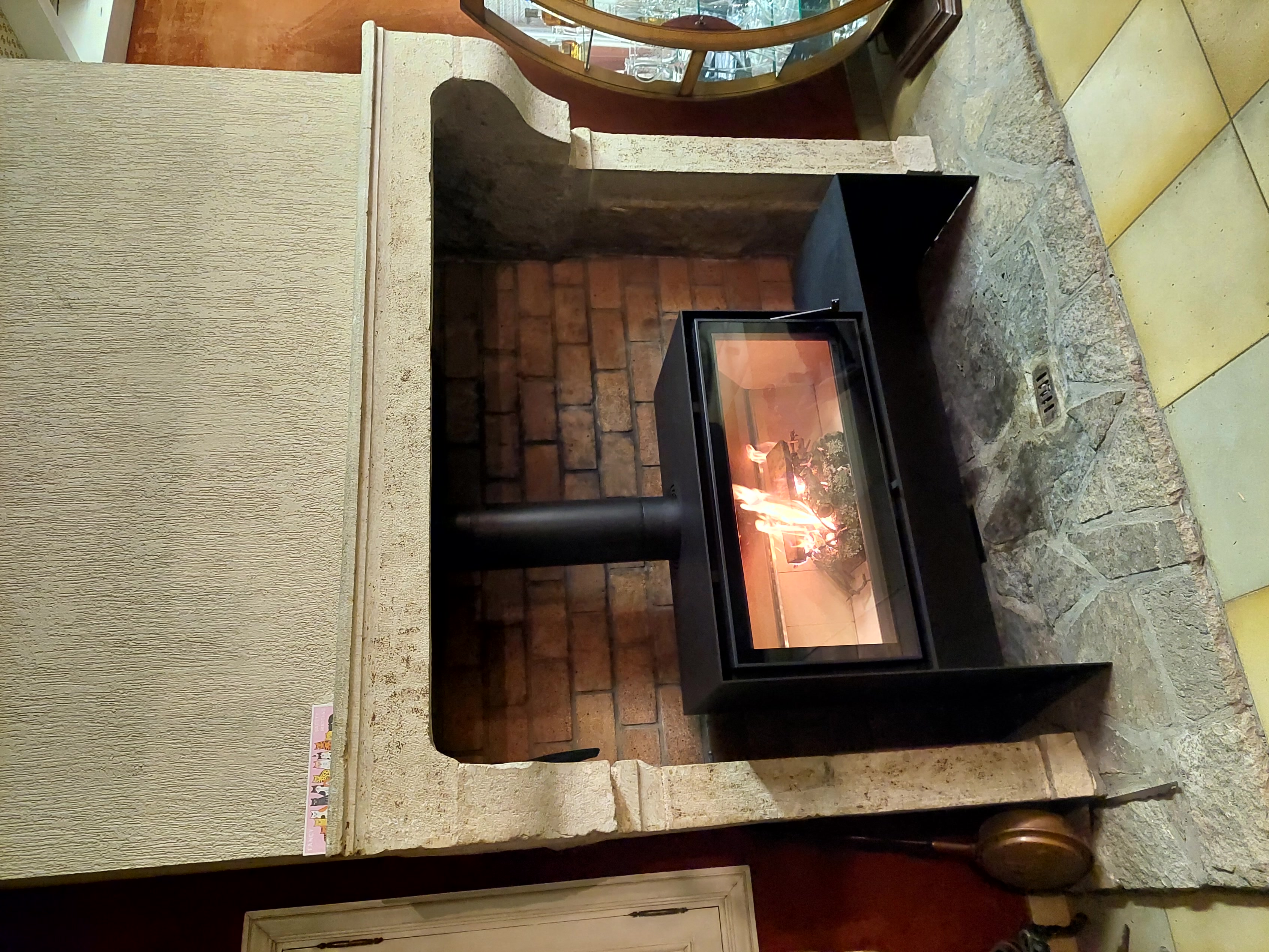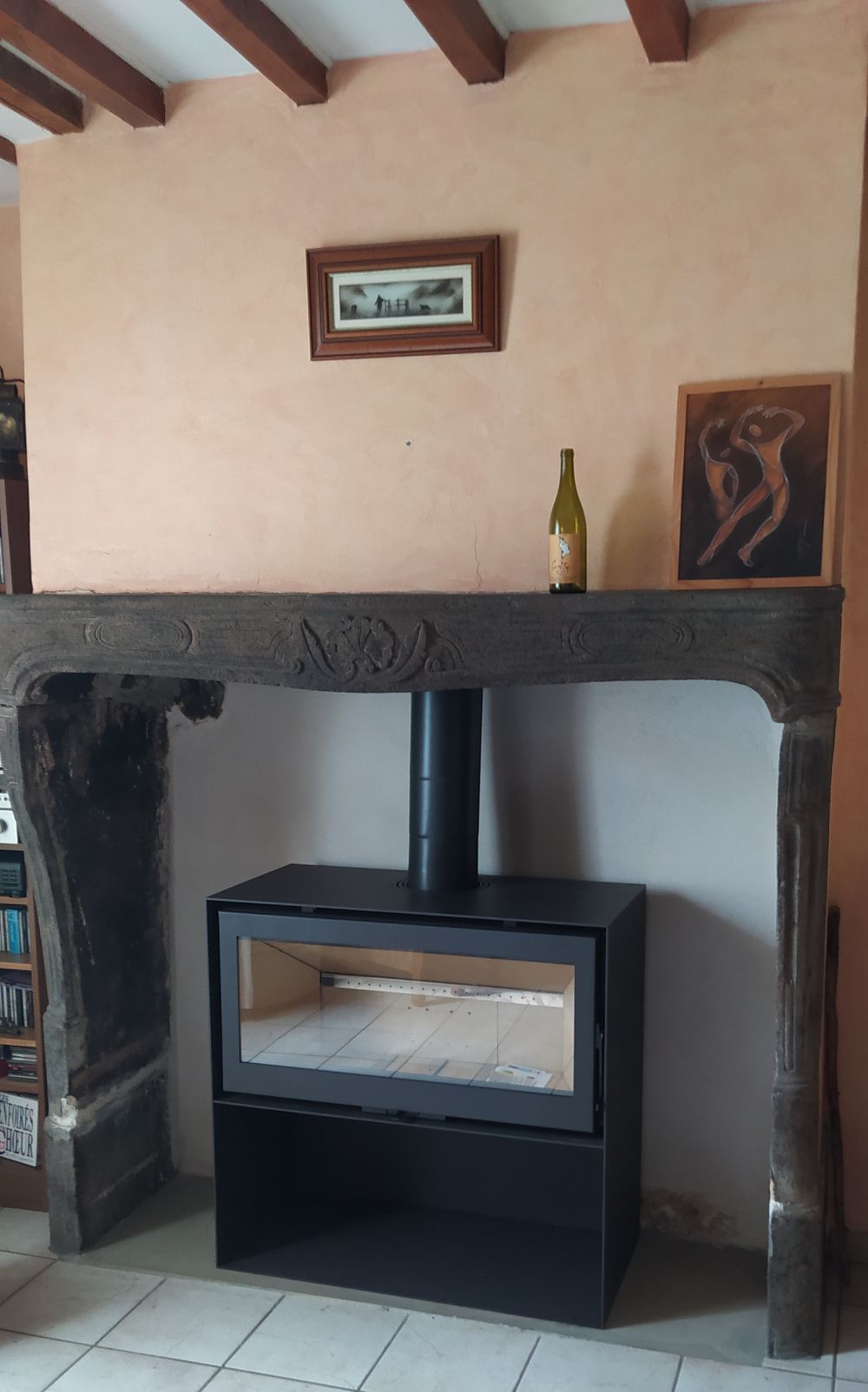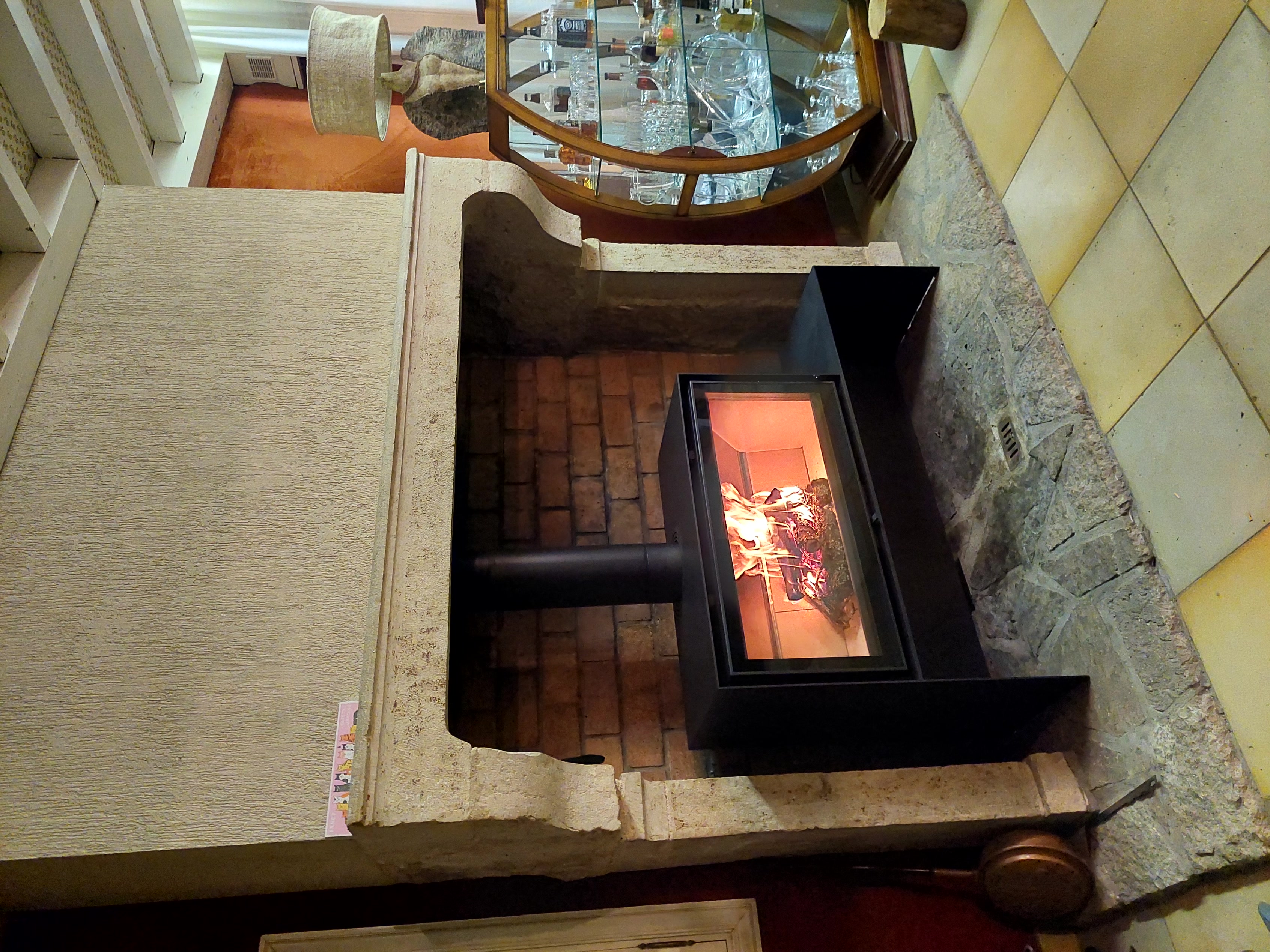 Cet insert est intégré dans une cheminée.